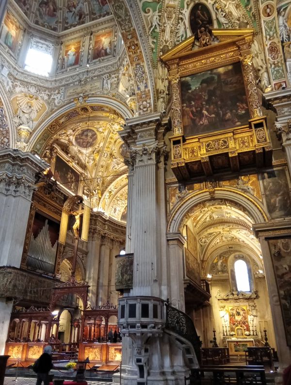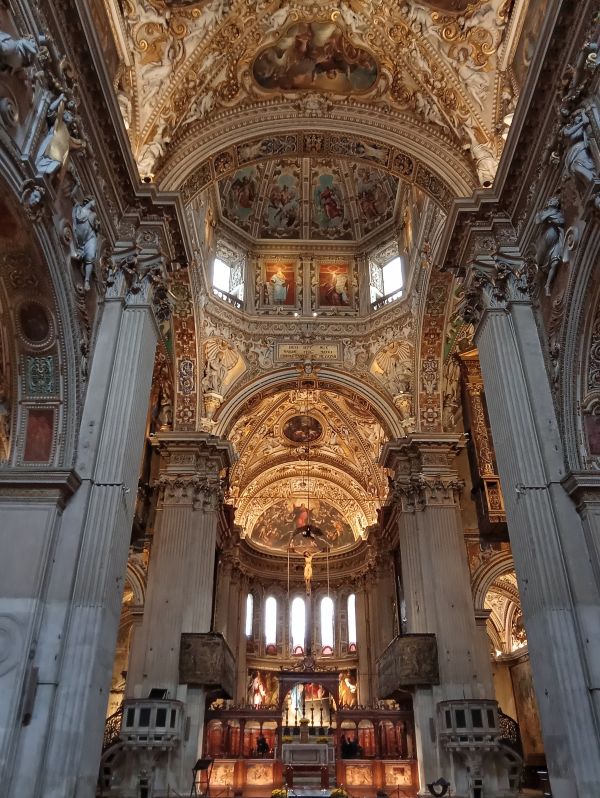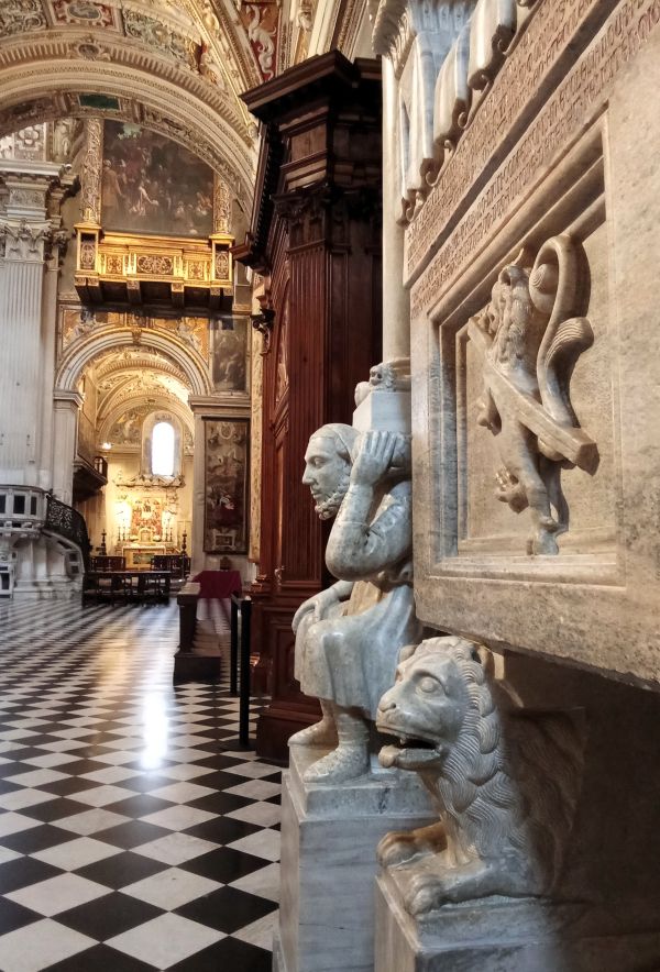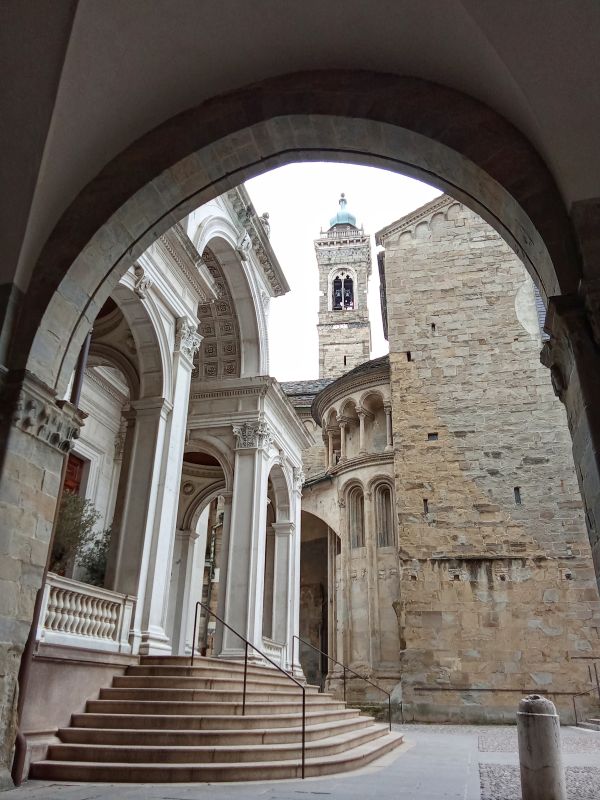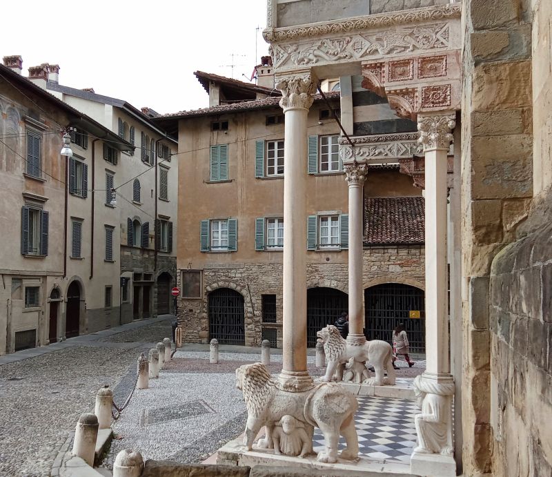 Minden olasz város erősen verseng, hogy elvigye a pálmát az egy négyzetkilométerre eső templomok számában, Bergamóban ez a szakrális sűrűség leginkább a Piazza Vecchia köveit koptatva figyelhető meg, ahol egymás mellett áll a Battistero (keresztelőkápolna), a Colleoni-kápolna (Capella Colleoni), a Basilica di Santa Maria Maggiore és a bergamói dóm.