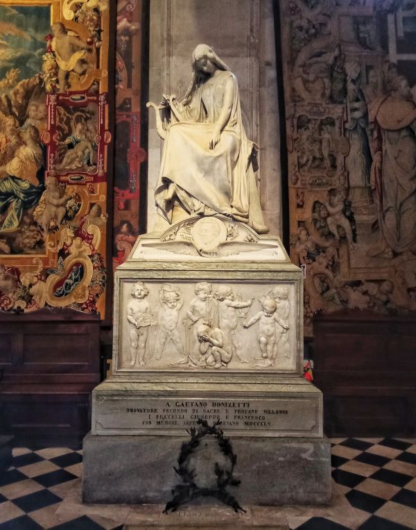 Gaetano Donizetti (1797–1848) olasz zeneszerző Rossini és Bellini mellett az olasz bel canto korszak legnagyobb, legtermékenyebb operakomponistája volt, sírja a bazilikában van, Simon Mayr sírja mellett. A német zeneszerző 1802-ben költözött Bergamóba, ahol kapellmeisteri kinevezést kapott, és központi szerepet töltött be a város zenei életében koncertek szervezésével és Beethoven zenéjének bemutatásával. Élete végén megvakult.