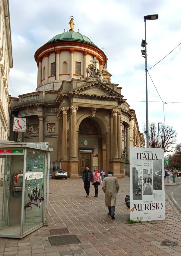 De előbb kávé! Ezen a külvárosi szegleten két hely akad: egy, az én ízlésemnek túl steril, fancy gelateria, ill. az utca túloldalán az időtlenül életszagú kis Bar La Pesa. Cseppet sem fancy, ám annál barátságosabb. Lehet lottózni is. És ne feledjük, Olaszországban a kávé a lelakottabb kiskocsmákban is mindig kiváló. Mondjuk, az egy kicsit meglepett, hogy 2025-ben a legfejlettebb régióban, Lombardiában guggolós wc-t találok… Viszont szép tiszta, és esküszöm, higiénikusabb, mint a legtöbb nyilvános klotyó.