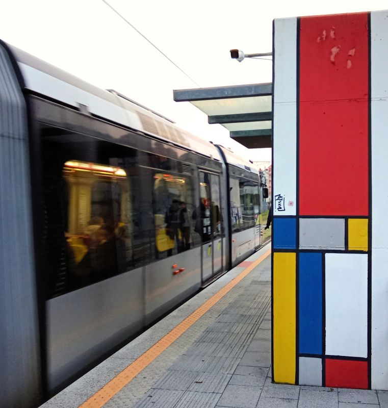 A mondrianosra dizájnolt Bergamo Martinella villamosmegállóban azért szálltam le, mert kerestem egy nagyobb szupermarketet, az meg épp van itt. (Testi-lelki felkészülés az undok hazai télre.)