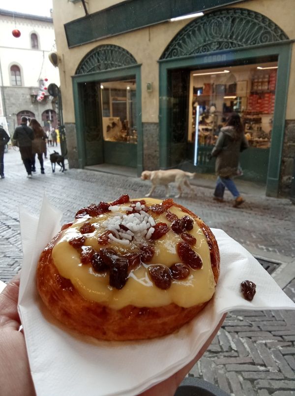Egész napos városnézéshez nagyon fontos a megfelelő kalóriabevitel. Ennek szellemében léptem be a Pasticceria Nessi Citta’ Alta ajtaján egy girella crema e uvetta elfogyasztása érdekében, ami nem volt könnyű döntés, mert egyszerűen minden jól nézett ki. Csak ajánlani tudom!