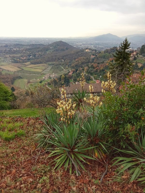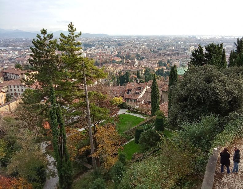 Miután megbizonyosodott róla, hogy követem, a jó húsban lévő bergamói munkamacska megmutatta, hol kell lekanyarodni a Lorenzo Rota Botanikus Kert felé, amit késő ősszel és télen nyugodtan kihagyhatsz, ellenben térj vissza, amikor feléledt a természet, mert mindenféle flóra burjánzani fog, és innen is vagány a panoráma.