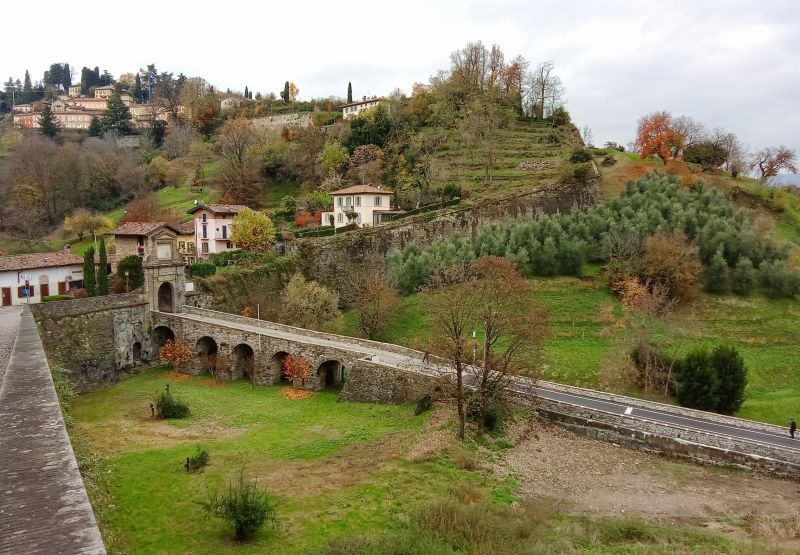 A hegytetőre épített Castello di San Vigilio nem annyira várként érdekes, mint inkább magaslati kilátópontként, ahonnan kiváló panoráma nyílik a lombardiai síkságra. Tiszta időben ellátni egészen a Dolomitokig. A másik jó panorámapont ettől lejjebb van: a Rocca di Bergamo egy XIV. századi erőd, amit szimpatikus park vesz körbe. Mindkettőt érdemes felkeresni, a Vigiliótól szebb a táj, a Roccától jobb a rálátás az óvárosra.