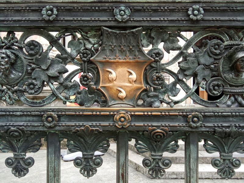 Itt, a Cappella Colleoninál találtam meg a város legtökösebb kerítését: a bronz alkalmatosságon a Colleoni család címere látható. Három here. Nem vicc.