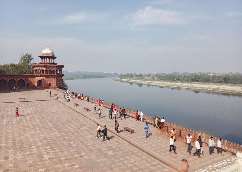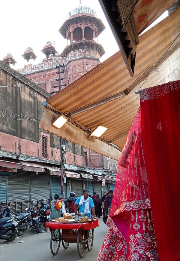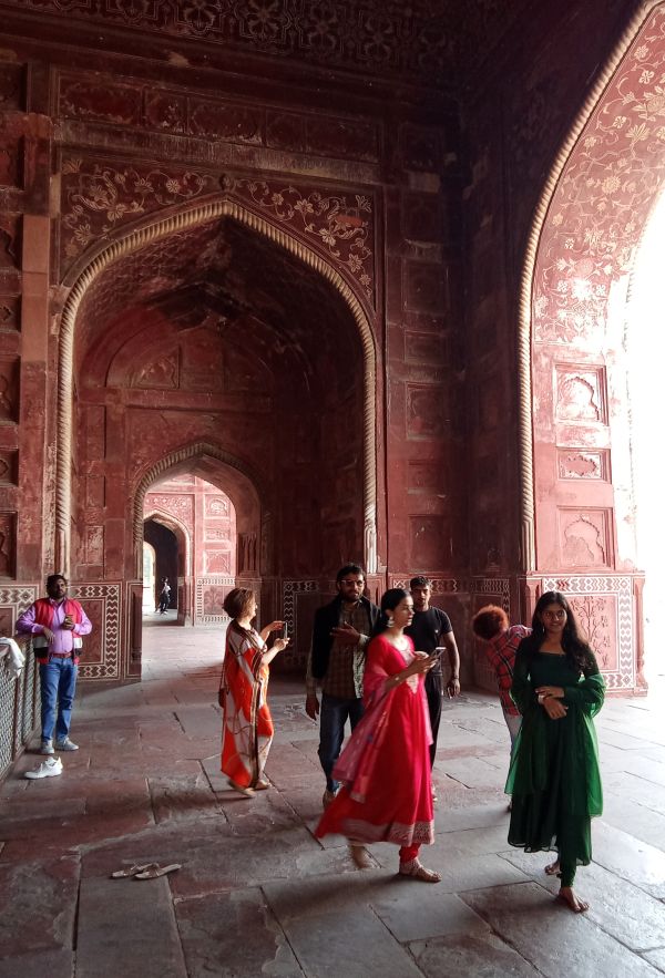 Dzsajpurból Agrába busszal megyek, ezen a viszonylaton Flixet nem találtam, van helyette száz másik, abszolút olcsón és élhető minőségben. Én a NueGo-t választottam, kb. 1500 forint volt a buszjegy, pont a fele, mint a Flix idefelé. Mondjuk, a felszállóhely a valóságban 2 utcányira volt attól, mint ahova az app mutatta. Nem tudom, milyen belső ösztöntől vezérelve szaladtam át az utolsó pillanatban oda, ahova a Google Maps jelezte… de jól tettem, mert onnét ment, nagyjából 3 perccel start előtt oda is értem. Agráig kb. 250 km az út, ezt 5 óra alatt lehet megtenni.