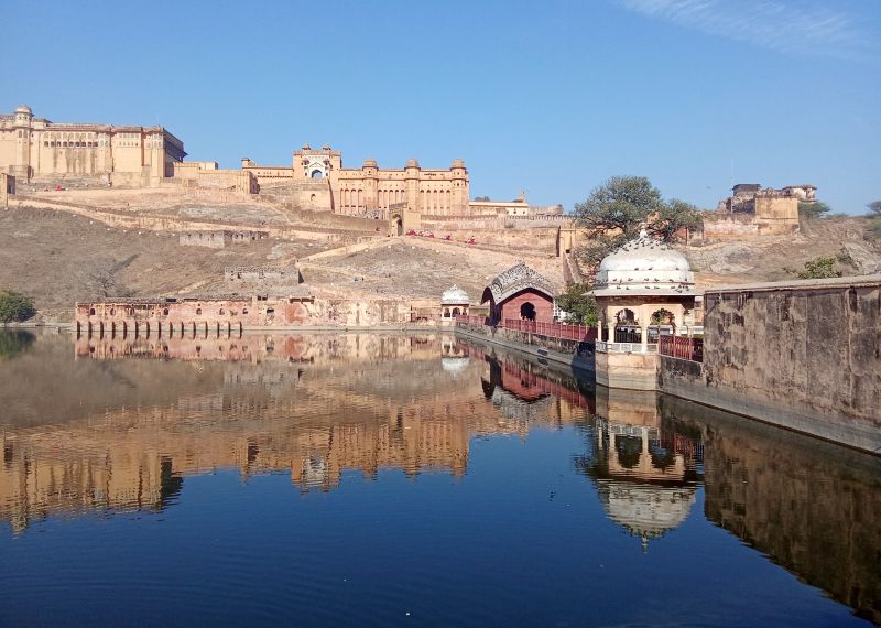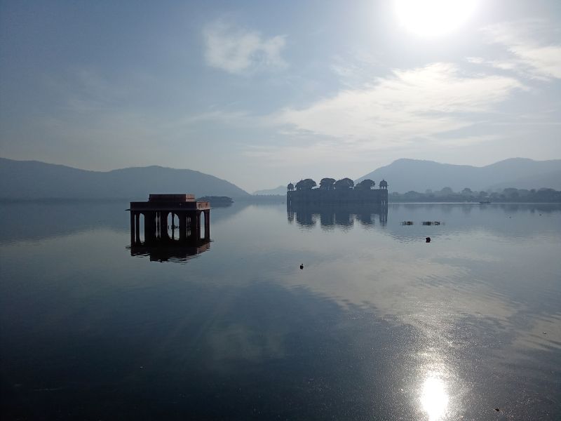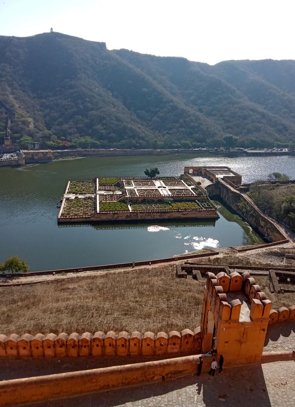 A központban tett körök után a vízben álló palotához zötyögök ki egy helyijáratos busszal (kemény 20 rúpia). A Jal Mahal különleges látványt nyújt: a Man Sagar-tó közepén emelkedik. Az 1600-as évek legvégén építették, majd a XVIII. század elején Jai Singh II maharadzsa idején felújították és kibővítették – nemcsak magát az épületet, hanem a körülötte elterülő tavat is. Innen még kijjebb indulok, az Amber Forthoz, de oda már riksával (100 rúpia).