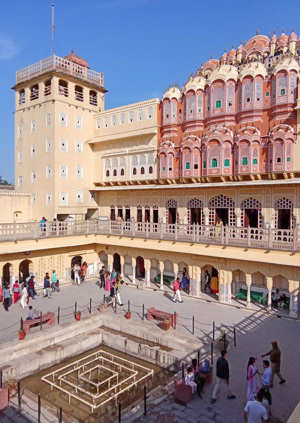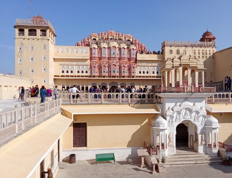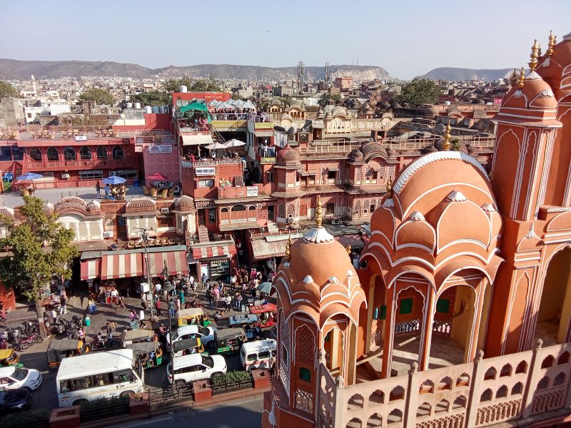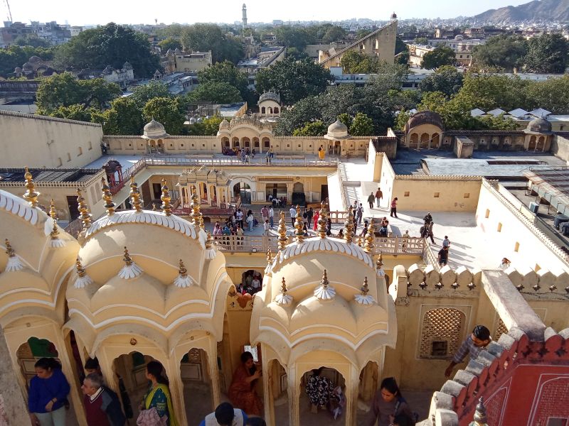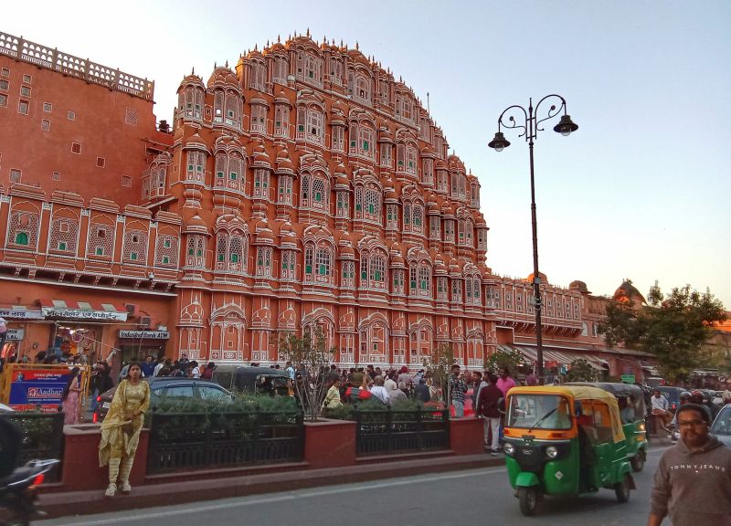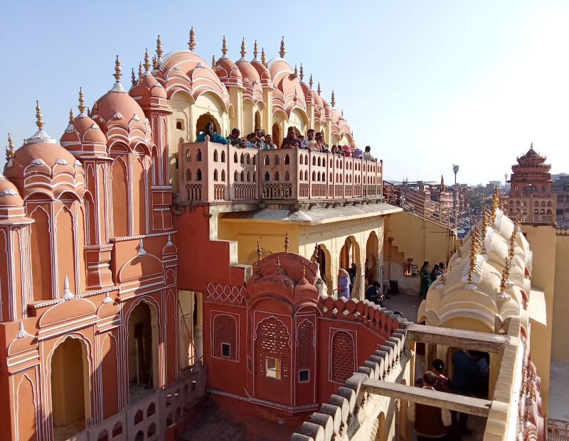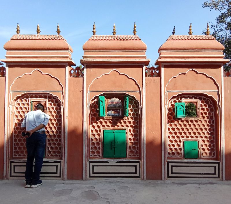 Hawa Mahal, avagy a Szelek Palotája – 953 apró kőablak állt az előkelő hölgyek rendelkezésére, hogy észrevétlenül figyelhessék az utcai életet több mint két évszázaddal ezelőtt. Ma a turisták teszik ezt, kevésbé észrevétlenül. A rengeteg nyílás arra is jó, hogy rendesen átjárja a levegő az épületet, innen a neve.