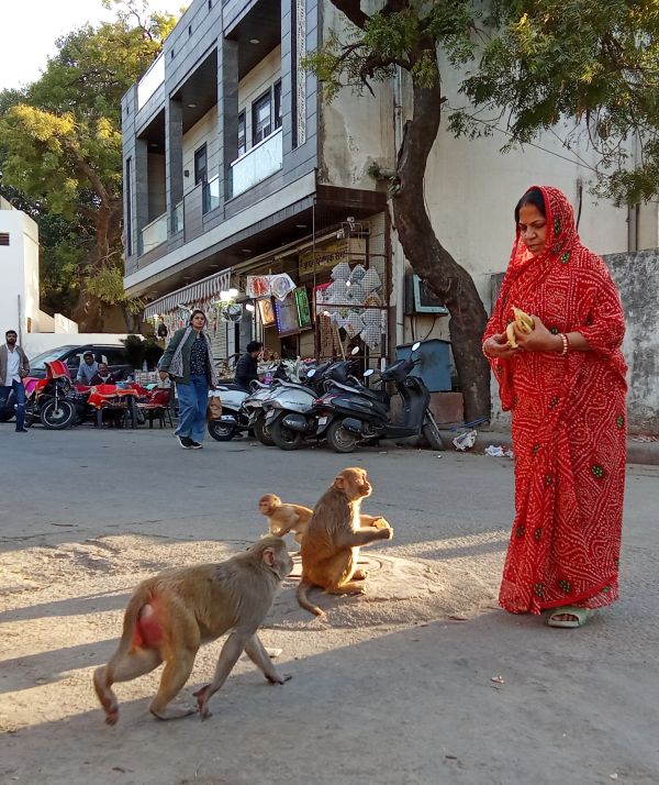 Nem tartottam népszámlálást, hogy majomból vagy tehénből van több, mindenesetre nehéz úgy sétálni pár percnél hosszabban, hogy valamelyikükkel ne találkozz össze. A tehén a hindu vallásban szent állatnak számít, az életet, az anyaságot és a bőséget jelképezi. Sok tehénnek eleve nincs konkrét gazdája, vagy szabadon engedik őket, miután már nem adnak tejet. Kóborolnak az utcákon, az emberek gyakran etetik is őket. Ha meg nem, keresnek valamit maguknak a szemétben.