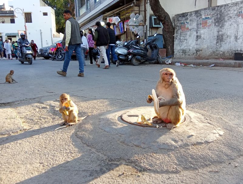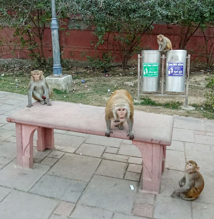 A parkban a fotográfusokon kívül majmok is tartózkodnak életvitelszerűen. Akiket magamban csak simán lemakákóztam, azok a rézuszmajmok. A rézuszmajom az egyik legismertebb ázsiai majomfaj, amely egész Indiában gyakori. Rendkívül alkalmazkodóképes: az erdőktől a hegyvidéken át egészen a zsúfolt településekig bárhol megél. Csapatokban él, hangos, játékos, de néha kifejezetten szemtelen.