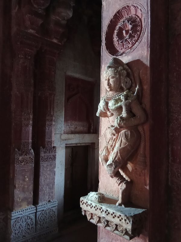 A kijárathoz közel van az erőd másik közönségkedvence. Síva a hindu vallás egyik legfontosabb istene, felismerem a nyakában tekergő óriáskígyóról. Gyakran ábrázolják meditáló jógiként is, vagy mint itt, kozmikus táncosként (Natarádzsa), amint az isteni tudás győzelmét testesíti meg a tudatlanság felett. A tudatlanság megtestesítője a kicsi démon, Apaszmará, akire Síva rálép, de nem tapossa el, csak lefogja – ez szimbolizálja, hogy a tudatlanságot nem lehet teljesen kiirtani, csak uralni kell a spirituális tudatosság révén.