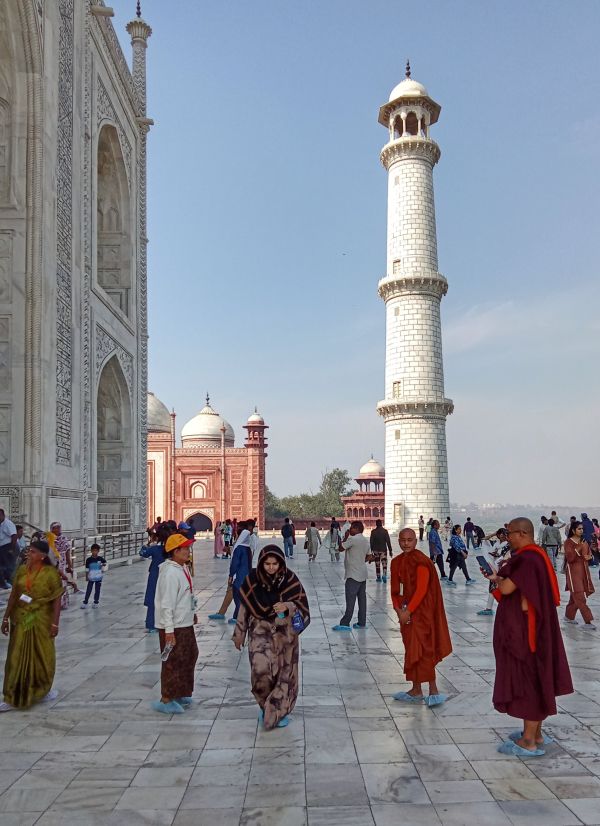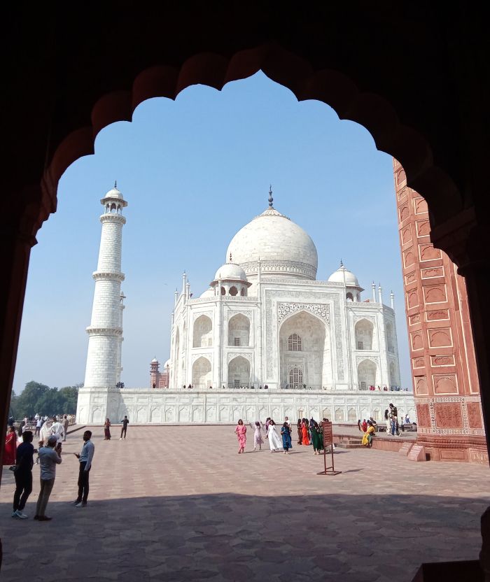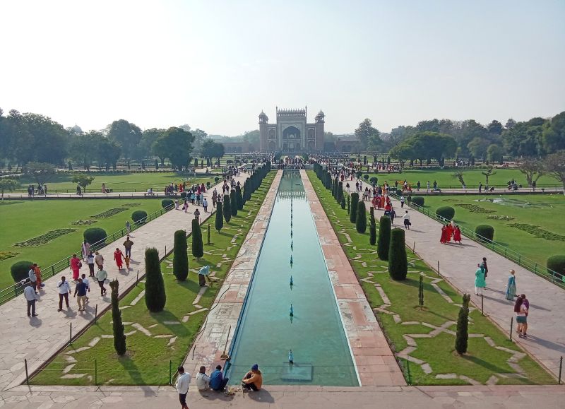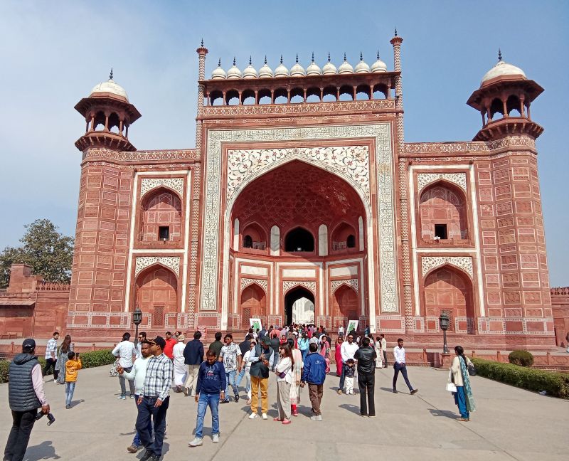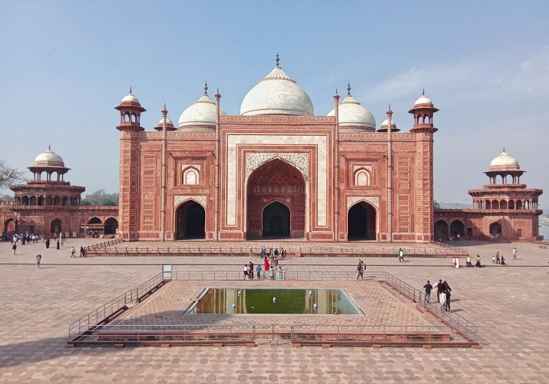 A főkapu, a Darwaza-i-Rauza a Taj Mahal együttesének további fontos eleme, ezen keresztül lépsz be először a kertekbe, ezzel szemben, messze, a medencéken túl áll a hófehér síremlék. A mauzóleum mögött lehet tenni egy sétát a Jamuna partján, valamint megnézni a mecsetet és a mecsetre nagyon hasonlító vendégházat. Ez utóbbit azért építették, hogy szimmetrikus legyen az egész komplexum. Van a területen egy kis múzeum is, ha érdekelnek a részletek meg a történelem, mindenképp nézz be oda is.